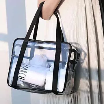 SxoSyo Clear Makeup Bags Large Travel Toiletry Bag for Women Transparent Bag Clear Cosmetic Bags with Handle Bathroom Organizer (black)