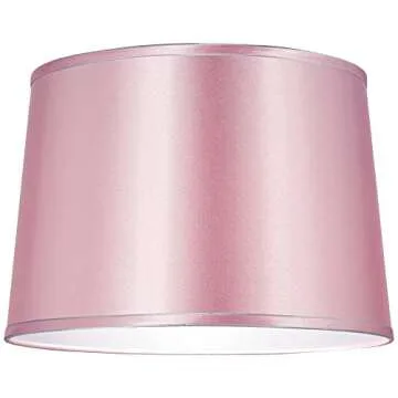 Sydnee Pale Pink Satin Medium Drum Lamp Shade 14" Top x 16" Bottom x 11" Slant (Spider) Replacement with Harp and Finial - Springcrest