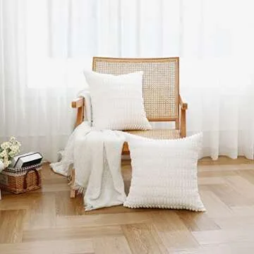 sykting White Throw Pillow Covers 20x20 inch Soft Striped Corduroy Plush Boho Farmhouse Decorative Pillow Covers for Couch Sofa Bed Living Room Pack of 2