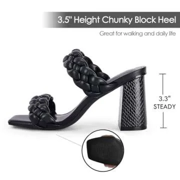 Syktkmx Womens Braided Heels Sandals Chunky Block Heel Double Strap Summer Dressy Sandal, Black, Size 8