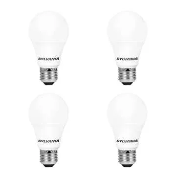 SYLVANIA LED Light Bulb, 60W Equivalent A19, Efficient 8.5W, Medium Base, Frosted Finish, 800 Lumens, Bright White - 4 count (Pack of 1) (79704)