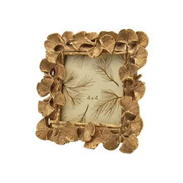 SYLVIA'S SHOP Vintage 4x4 Square Picture Frame - Small Antique Ornate Gold Ginkgo Leaf Decor