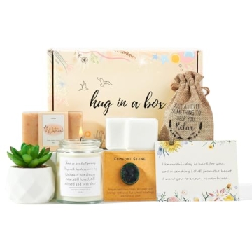 Show moreSympathy Gifts for Loss of Loved One: When words aren't enough, our sympathy gift baskets offer a heartfelt solution. Each item is carefully chosen to provide comfort and compassion, offering a meaningful gesture for those navigating loss and grief. Unique Sympathy Gifts: Thoughtful items such as a soothing sympathy candle, two relaxing shower steamers in a burlap gift bag, an oatmeal soap bar, a comfort stone, an artificial succulent for a touch of life, a sympathy card, all neatly arranged in a thoughtfully designed gift box, guaranteeing a complete and comforting presentation. Condolences Gift Basket for Loss: Our sympathy gift is an ideal selection for various occasions, such as condolences gift basket for loss, in memory of loved one gifts, bereavement gifts for loss of father, loss of a mother sympathy gifts, pet loss gifts, miscarriage gifts for mothers, care package for grief. Sending Your Care and Love: Unique sympathy gifts for various losses: mom, dad, mother, father, husband, son, daughter, baby, child, grandparents, pets, friends, and relatives. Thoughtful funeral gifts for those you couldn't be with. Our sympathy tokens for women extend a sincere embrace, imparting solace and reassurance during moments of reflection and healing. Bereavement Gift Ideas: Our AprBox condolence gifts for women are crafted to express your sympathy in a tangible manner. Ideal for conveying condolences during difficult times, our baskets offer a heartfelt and genuine expression of care and compassion.