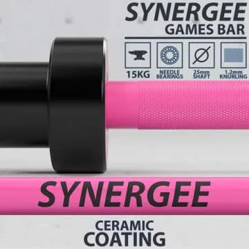 Synergee Games 15kg Colored Women’s Pink Ceramic Coated Barbell. Rated 1500lbs for Weightlifting and Powerlifting