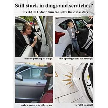 Show more Introduce peace of mind in every parking situation with the SYOAUTO Car Door Edge Guards. Designed specifically for car enthusiasts and everyday drivers alike, these edge guards protect your vehicle's door edges from scratches and dents that can occur in tight garages or crowded parking lots. With a robust construction that includes reinforced metal clips within the rubber, these guards provide a secure and worry-free fit that won't harm your paint job.