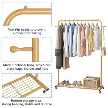 With thoughtful features like anti-slip beads on both ends of the hanging rod, you can say goodbye to hangers slipping off, keeping your clothes neatly organized and within reach. The bottom shelf is perfect for additional storage, providing a dedicated space for boxes, shoes, or boots, while two side hooks make it easy to hang scarves, hats, bags, and more. Say hello to a more organized environment!