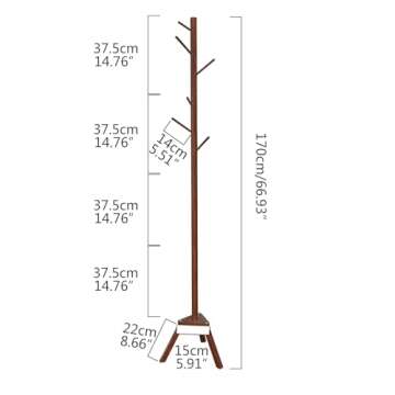 Sywhitta Coat Rack Stand, Premium Bamboo Free Standing Coat Rack with 6 Hooks, Easy Installation Clothes Hanger Stand
