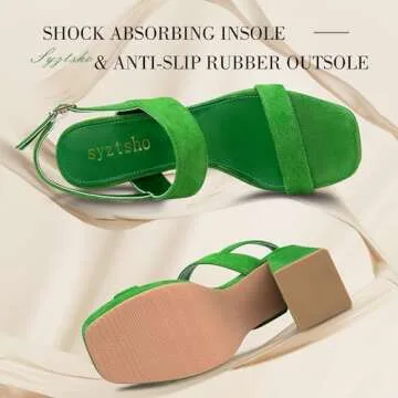 syztsho Platform Heels for Women Chunky High Heel Sandals Suede Ankle Strap Sexy Wedding Dress Pumps Square Toe Wedges Shoes Green US 7.5