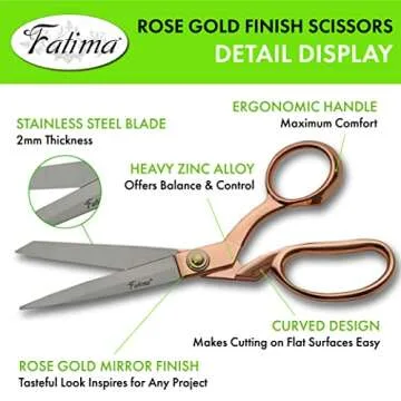 Szco Supplies 8.5” Fatima Heavy-Duty Professional Fabric Tailor Scissors For Home Crafts And Office With Rose Gold Finished Handle