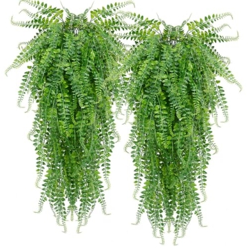Show moreIntroducing the **SzJias Artificial Hanging Plants Ferns**, a perfect blend of aesthetic charm and practical design for outdoor decor enthusiasts. Measuring an impressive 33 inches long, these lifelike ferns come in a convenient pack of two, making them an excellent choice for those looking to enhance their patios, porches, or outdoor living spaces. Crafted from high-quality plastics and built with delicate iron wire stems, these faux plants are designed to withstand the elements while providing a vibrant, green haven without the hassle of traditional plant care.