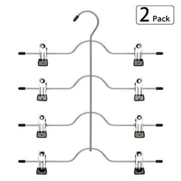 Szxc 2 Pack Skirt Pants Hangers with Adjustable Clips - 4 Tier Chrome with Black Vinyl - Non-Slip Durable - Closet Storage Organizer Space Saving (Pants Skirt Hangers (Set of 2)