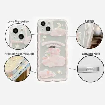 SZXYCZL Compatible iPhone 14 Case Cute Cartoon Floral Bear Design Female Girl Aesthetic Cute Slim Soft TPU Transparent Case for iPhone 14-Yellow