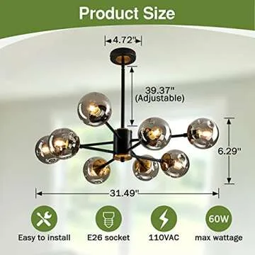 SZXYKEJI 8 Light Chandelier Pendant Lighting Black with Glass Globes Classic Vintage Sputnik Ceiling Light Fixture for Kitchen Living Room Dining Room Bedroom Farmhouse..
