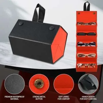 SZYMWS Sunglasses Case Organizer 5 Slot Travel Glasses Case Multiple Sunglasses Holder Organizer Eyeglasses Storage Box (Black+Red)