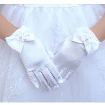 T.H.L.S Tandi Girls Gorgeous Satin Fancy Gloves for Special Occasion Dress Formal Wedding Pageant Party Short