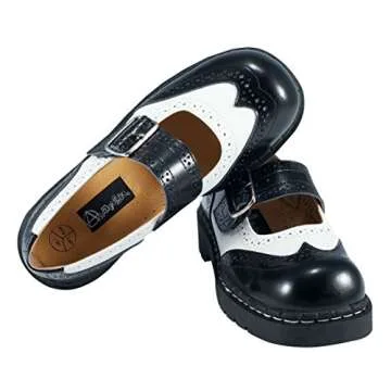 Show moreStep into elegance with the T.U.K. Leather Brogue Black/White Mary Janes – a pair that seamlessly combines classic sophistication with modern flair. Crafted with a premium black leather upper, these Mary Jane shoes boast intricate brogue detailing that adds a touch of timeless charm to every outfit. Whether you're dressing up for the office or planning a night out, these shoes will effortlessly complement your style, allowing you to express your unique personality while feeling comfortable and confident.