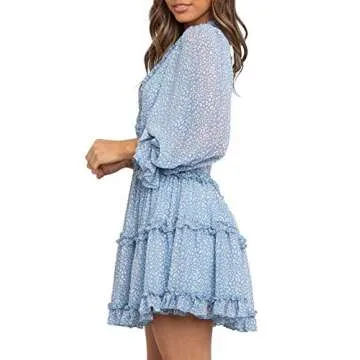 T1FE 1SFE Boho Ruffle Floral Print Dress Long Sleeve Deep V Neck Backless Swing Mini Dresses for Women Party Wedding
