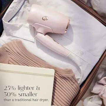 T3 Afar Lightweight Travel-Size Hair Dryer with Auto Dual Voltage, Folding Handle, Fast Drying, Lightweight and Ergonomic, Frizz Smoothing, Multiple Heat and Speed Combinations