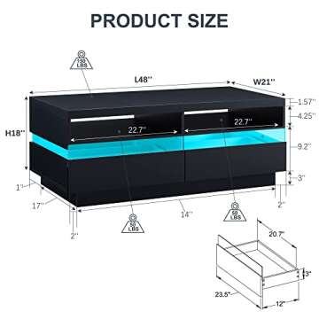 T4TREAM 48" LED Coffee Table with Storage, Modern Center Table with LED Lights & Power Strip, Coffee Table with Drawers for Living Room, Easy Assembly, Solid Black