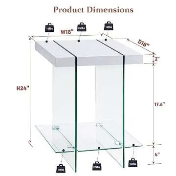 Show moreTransform your living space with the exquisite T4TREAM Modern End Table, designed to elevate your home decor while providing functionality. Crafted with tempered glass legs and a solid wood top, this table is not only eye-catching but also incredibly sturdy, supporting up to 90 lbs. The sleek aesthetic of this table seamlessly blends with any room, making it an ideal addition to your living room, bedroom, or office. With its compact structure and exquisite design, it is perfect for highlighting your stylish decor while providing essential storage.