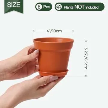 T4U 4 Inch Plant Pots 18-Pack - Small Plastic Planter with Drainage Hole and Saucer, Decorative Nursery Flower Pot Bulk for African Violet, Snake Plant, Succulent and All House Plants
