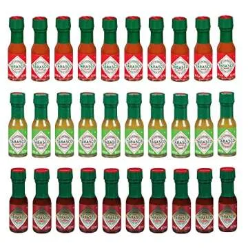 Show more Elevate every meal with the profoundly flavorful Tabasco Sauce Mini Hot Sauce Bottles 30 Pack by Snackivore! This exceptional set includes 30 mini bottles of the beloved Tabasco sauce, with 10 bottles each of three delightful flavors: Original, Jalapeno Sauce, and Chipotle. Whether you crave the zesty kick of the classic Original, the fresh flavor of Jalapeno, or the smoky heat of Chipotle, you will discover the perfect taste for any occasion. At only 0.125oz each, these travel-sized bottles make it easy to take your favorite hot sauce with you wherever you go. Say goodbye to bland meals and hello to the convenience of carefully packed flavor! Less