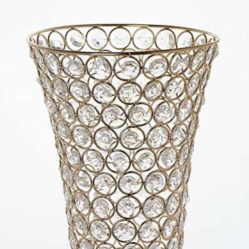 Show moreIntroducing the exquisite **Tableclothsfactory Set of 2 Tall Gold Beaded Crystals Trumpet Floral Vases**, designed to elevate any wedding or event with elegance and sophistication. Standing at a breathtaking 23 inches tall, these vases feature stunning gold beaded accents and sparkling crystals that catch and reflect the light beautifully. Perfectly crafted to create a luxurious centerpiece, they can effortlessly enhance your decor, whether it's for a lavish wedding reception, a grand celebration, or an intimate gathering. Their versatile design allows you to adapt them to various floral arrangements, making them a must-have for anyone looking to make a statement.
