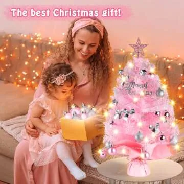 Experience the magic of the holiday season with the Migaven 24-inch Tabletop Christmas Tree. This stunning pink mini tree is designed to add a pop of color and festive spirit to your home. With its 65 lush branch tips, it creates a delightful, full appearance that serves as a charming centerpiece for any holiday gathering. The included 30 LED string lights emit a warm glow, perfect for illuminating your celebrations and bringing joy to every corner of your...