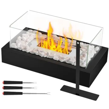 Imagine enjoying delicious s’mores with friends and family, thanks to the included three extendable roasting sticks, designed with safety in mind. The four-sided glass panels shield your hands from intense heat, creating an enjoyable roasting experience without the risk of burns. Not just a fire pit, but a versatile accessory to your home décor, it effortlessly brings warmth and a romantic ambiance to any space, be it your living room, dining area, garden, or balcony. It is incredibly easy to operate; just assemble without tools, add your chosen fuel, and ignite for instant warmth.