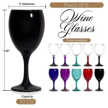Show more Bring a splash of color to your dining experience with the TableTop King Colored Wine Glasses Set! This stunning collection features six vibrant wine glasses, each capable of holding 10 ounces of your favorite beverage. What sets these glasses apart is their unique ability to blend modern design with exceptional functionality, allowing you to elevate your dining table or bar in a way that’s both artistic and practical. Made from high-quality, BPA-free and lead-free glass, every sip is not only pleasurable but safe, making these glasses perfect for everyday use or special occasions.