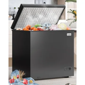 Show more Introducing the TABU 10 Cubic Feet Chest Deep Freezer—the ultimate solution for your food storage needs! Engineered with a stylish black finish, this large freestanding freezer combines functionality with modern design. Measuring 22 x 25 x 33.5 inches, it boasts an impressive storage capacity of 10.0 cubic feet, allowing you to stock up on everything from seafood to ice cream. With a top-opening hinged door that provides easy access and an adjustable leveling leg to ensure stability on uneven surfaces, this freezer is as practical as it is attractive.