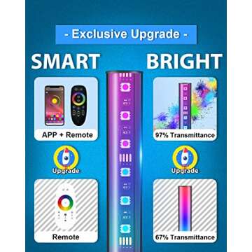 TACAHE Smart Corner Floor Lamp - Advanced Version, APP & Remote Control - Multi Lamp Pattern Sync - Transparent Lampshade with Ultra Brightness, Mood Light for Studio, Gaming Setup - 20W, Black