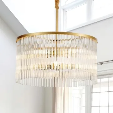 Show moreElevate your home decor with the exquisitely crafted TACDANDM 20.47" Round Glass Chandelier. This modern chandelier embodies elegance and sophistication, featuring a stunning display of high-quality clear glass rods that not only capture the eye but also refract light beautifully, creating a mesmerizing glow in any setting. The striking gold-painted iron frame provides a solid foundation, holding up to eight bulbs to illuminate your space with charm. Perfectly designed for a range of aesthetic preferences, this chandelier seamlessly lends itself to dining rooms, entryways, kitchens, or even professional settings, becoming a centerpiece that impresses both guests and residents alike.