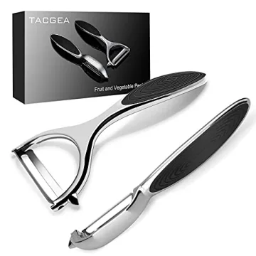 Show moreIntroducing the TACGEA Vegetable Peeler Set, designed for every kitchen enthusiast and professional alike! This exceptional set includes two peelers featuring upgraded rust-free carbon steel blades and a durable zinc alloy body. With their superior construction, these peelers promise longevity, ensuring they won’t rust even with regular hand washing or dishwasher use. Specifically crafted to tackle any fruit or vegetable, from tough-skinned potatoes to delicate pears, these peelers offer a versatile approach to food prep that enhances your cooking experience.