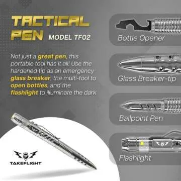 Tactical Pen - Self Defense Pen with Flashlight - Tactical Flashlight Multi Tool Survival Pen + Glass Breaker + Bottle Opener in Gift Box for Men & Women