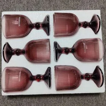 Taganov Purple Glasses Drinking Water Goblets set of 6 Colored Wine Glasses 13oz Pink Vintage Glassware for Wedding Party Bar Vertical Line Embossed Pattern Stemmed Cups 400ml