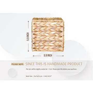 Show more The TAGREE Square Seagrass Tissue Box Cover is a thoughtfully crafted piece that embodies both functionality and aesthetic appeal. Made from high-quality, eco-friendly water hyacinth sourced from the skilled artisans of a Vietnamese handicraft village, this tissue box cover stands out as a blend of durability and natural beauty. Each piece is handwoven, showcasing expert craftsmanship that not only enhances the decor of any space but also emphasizes your commitment to sustainability. Measuring 5.9 x 5.9 x 5.9 inches, this cover fits most standard tissue boxes perfectly, and with its rustic charm, it is designed to complement various decor styles, from bohemian to farmhouse.<\/p>