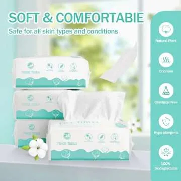 Tahoe Trails Disposable Face Towel, Soft Dry Wipe, Lint Free, Dry Wet Use for Sensitive Skin, 80Count Cotton Facial Tissue, Makeup Removing, Surface Cleaning 5.91 * 7.87inch, 80