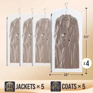 ... Show moreDiscover the ultimate solution for maximizing your storage space with TAILI's premium vacuum storage bags. Whether you're looking to create more room in your closet or store seasonal clothing, these bags are engineered to help you save up to 4X more space. The set includes four generous vacuum storage bags, each measuring 53x28 inches, perfect for suits, coats, dresses, and jackets. With TAILI's innovative design, you can say goodbye to clutter and hello to organized spaces.