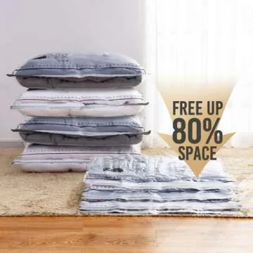 Show moreDiscover the ultimate solution to your storage challenges with the TAILI Long Side Zip 4 Pack Vacuum Storage Bags. Designed with versatility and durability in mind, these vacuum seal bags are not just ordinary storage solutions; they're your ticket to an organized and decluttered space. This innovative bag set includes a mix of 2 large (32x24 inches) and 2 jumbo (39x28 inches) vacuum bags, perfect for storing everything from bulky bedding and comforters to your entire wardrobe. Whether you’re preparing for a move, decluttering your home, or need extra storage for travel, this product will exceed your expectations.