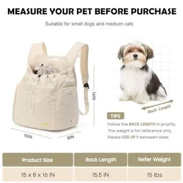 TailTrek Dog Front Carrier Backpack, Adjustable Pet Dog Carrier Backpack Ventilated Mesh Dog Travel Backpack with Zippered Side Windows for Traveling Hiking for Small Medium Dogs Cats (Max 15 lbs)