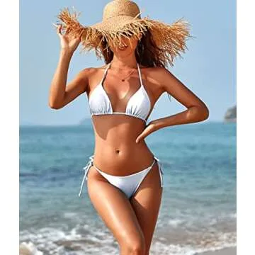 Tainehs Women's Sexy Halter Thong Bikini Tie Two Sides Bottom Triangle Bikini Swimsuits White