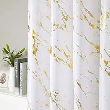 Show moreIntroducing the Taisier Home Gold Foil Print Linen Textured Curtains, a perfect blend of elegance and functionality designed to elevate your living space. Each panel measures 52"W x 84"L, providing generous coverage with a delightful geometric marble print that seamlessly merges modern style with a touch of rustic charm. The off-white fabric adorned with subtle gold foiling creates a sophisticated ambiance, making these curtains an ideal choice for any room in your home. Not only are they visually appealing, but they also serve a practical purpose by providing thermal insulation, helping to keep your home comfortable year-round.