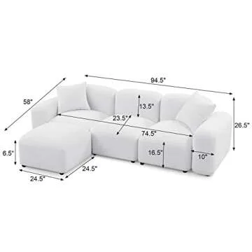 Taiweny Convertible Modular Sectional Sofa, Boucle Fabric L-Shaped Modern Bubble Couch with Ottoman, 3-Seater Sherpa Teddy Sofas for Living Room Apartment, 94”, White