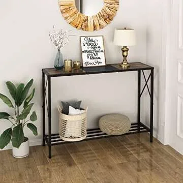 Tajsoon Console Table, 2-Tier Industrial Entryway Table, 41.8”LNarrow Sofa Table with Shelves, Entrance Table for Entryway, Hallway, Living Room, Foyer, Corridor, Office, Rustic Brown and Black