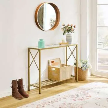 Tajsoon Entryway Table, 2-Tier Entry Way Console Entrance Table, 41.7”L Narrow Sofa Table with Shelves, Ideal for Hallway, Entryway, Living Room, Foyer, Corridor, and Office (Gold & White)