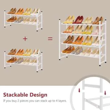 Tajsoon Expandable Shoe Rack for Closet 2 Tier, 28“-41“ Adjustable & Stackable Shoe Shelf Storage, Metal Shoe Rack Organizer for Front Door Entrance, Closet, Garage, Entryway, White