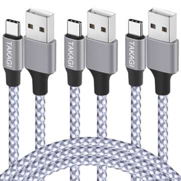 TAKAGI USB C Cable, Nylon Braided USB C to USB C Charger Fast Charging 60W 6ft 3Pack (Silvery White)