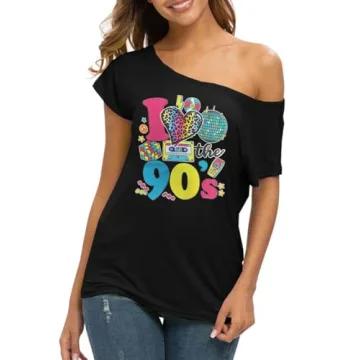 Take Me Back to The 80s 90s Shirt Women Vintage 90s Neon Shirts Off Shoulder Outfits