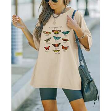 TAKEYAL Oversized T-Shirts for Women Short Sleeve Butterfly Graphic Bible Printed Loose Casual Tees Christ Shirt Tops Apricot S